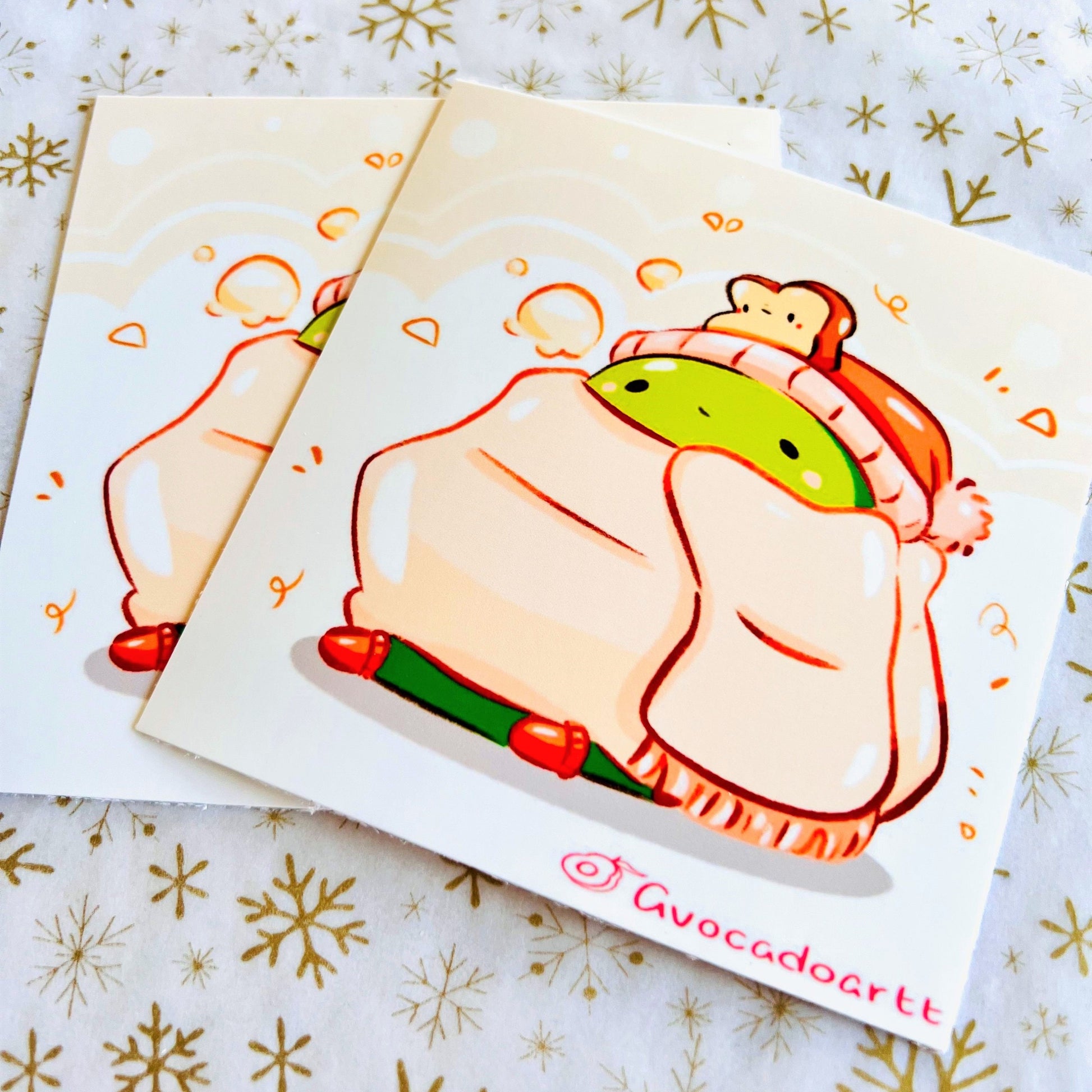 Get ready for winter with some help from Avocado and friends! This charming print is perfect for sprucing up your desk or scrapbook, adding some fun and personality to your space. You'll love this sweet winter-themed Avocado art print, which was lovingly drawn and is now looking for a new home.